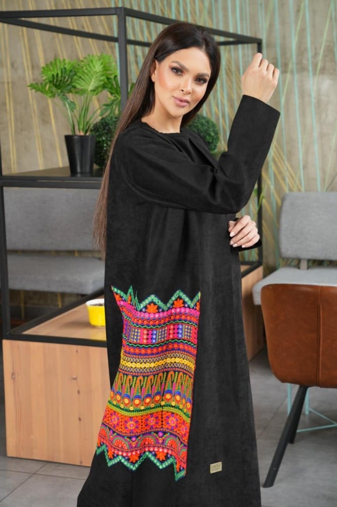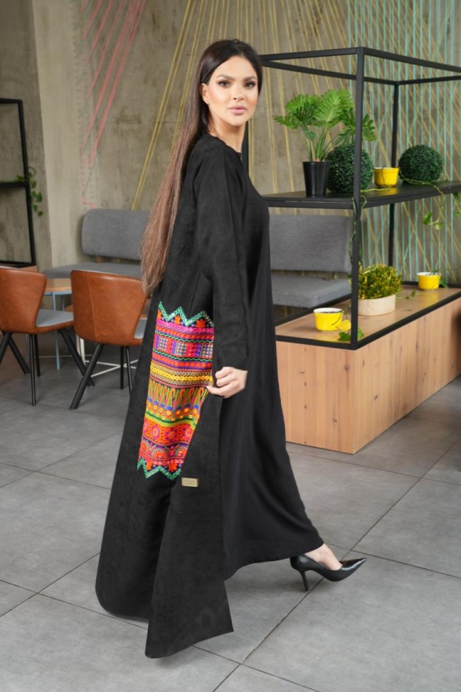 عباية أسود مخمل فرنسي خفيف مميزة بقطعة ذات الوان رائعة من التراث