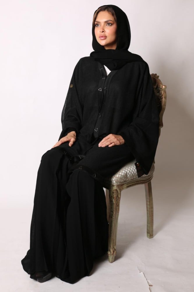 تتميز العباية بتصميمها الأنيق والفريد من نوعه، مع كسرة من الأسفل تُضفي لمسة من الأناقة.